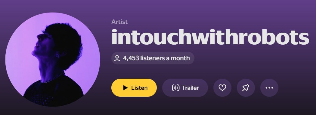 Правду говорят, если хочешь чего-то - отпусти? Я абсолютно не рассчитывал на эту песню, просто выпуская ее, потому что в очереди еще десяток незаконченных треков. И вот, она просто стрельнула и все. https://music.yandex.ru/artist/4825780?utm_source=web&utm_medium=copy_link