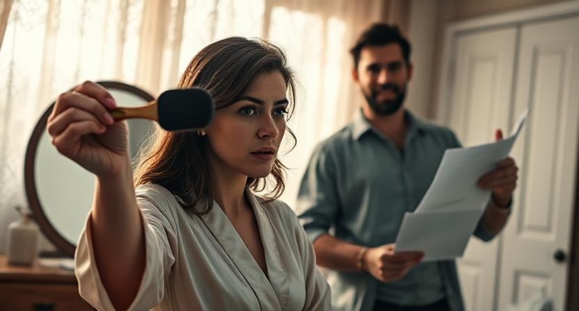 Катя застыла с расчёской в руке. В зеркале отражалось её лицо, на котором радость мужа не нашла никакого отклика. Она медленно опустила расчёску на туалетный столик и развернулась к нему. В груди что-то болезненно сжалось, словно невидимая рука стиснула сердце.