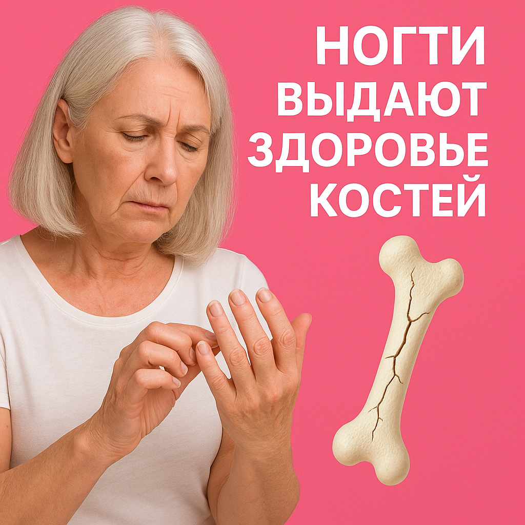Кости стали как стекло? Эти 6 признаков видно по коже и ногтям ещё до перелома Мы привыкли думать, что о здоровье костей скажут только рентген или врач. Но на самом деле тело подаёт сигналы заранее. Иногда достаточно просто взглянуть на кожу и ногти, чтобы понять: кости стали хрупкими, как стекло. Когда моей подруге сделали денситометрию (это исследование плотности костей), врач сказал: «Ваш организм уже давно сигнализировал об остеопорозе. Вы могли заметить это по коже и ногтям». Я тогда впервые задумалась: а может ли внешний вид действительно выдавать состояние костей? Оказалось, да. И сегодня я расскажу, на какие признаки стоит обратить внимание. Кости кажутся крепкими, но на самом деле это живая ткань. Она постоянно обновляется: старые клетки уходят, новые строятся. Для этого нужны кальций, витамин D и коллаген. С возрастом этот процесс замедляется: Результат: кости становятся пористыми и ломкими. А мы начинаем замечать это не сразу — сначала через «мелочи» на коже, ногтях, волоса