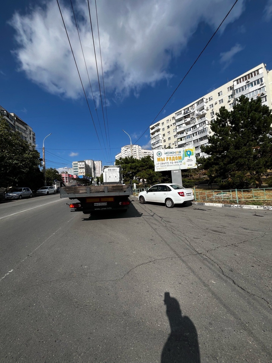 Здравствуйте. Сколько можно? Героев Десантников 89, стоит грузовик. Как ехал так и встал, совершенно наплевав на остальных. Уже молчим, что ему вообще нельзя здесь находиться. Штраф за парковку и за заезд под знак в спальный район на фуре будет? от подписчика 📲 @nvrsk_online