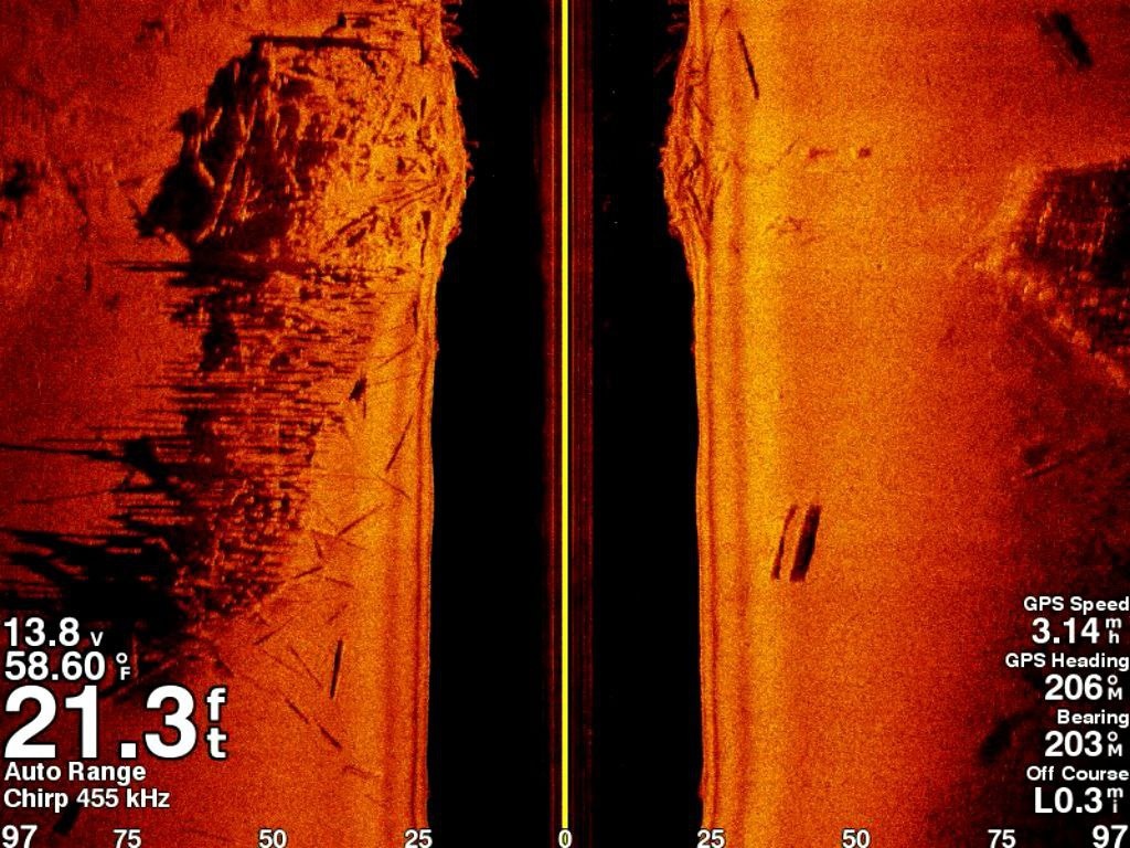 Тут все было по-другому. Вполне адекватная женщина, рассказывала что она делает и куда едет на катере, проверяла области по моим описаниям. Она пользовалась не только глазами, но и эхолотом со структурным сканером, видела все дно Волги в подробностях, все неровности, фото.