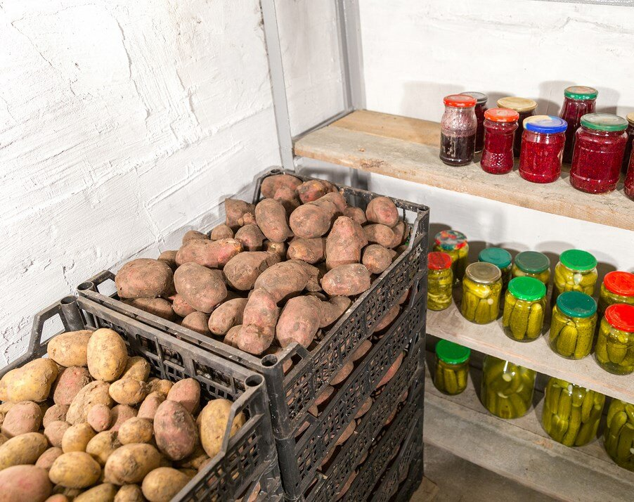 Картофель следует хранить в темном месте, так как свет способствует образованию зеленых пятен и соланина. Идеальными местами для хранения являются подвал, погреб или затемненные кладовки.