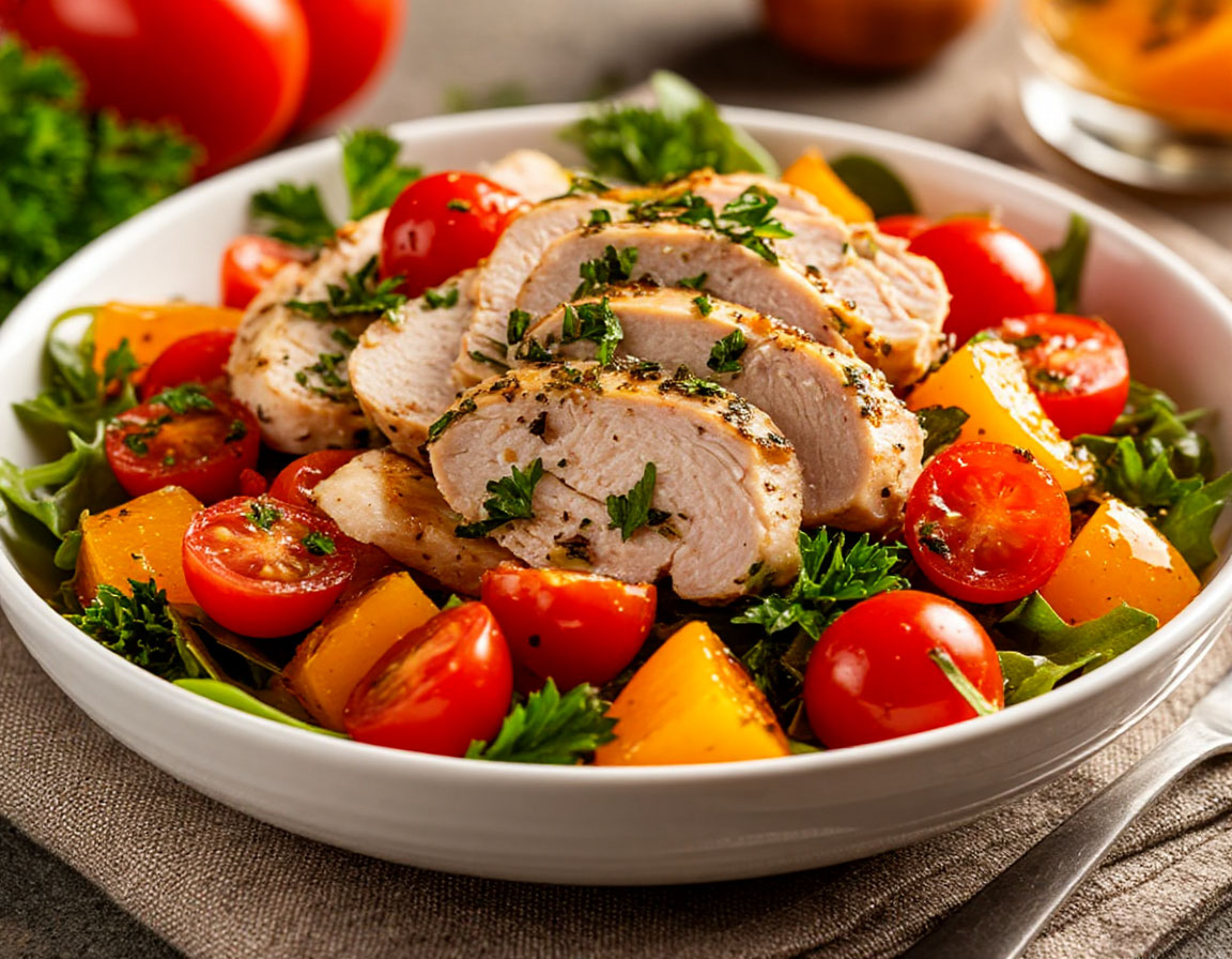 Тёплый салат с индейкой, овощами и зеленью — это не только вкусное и сытное, но и невероятно полезное блюдо, которое отлично впишется как в повседневное, так и в праздничное меню. Приготовить его просто, а результат обязательно порадует вас и ваших близких яркими красками, свежим ароматом и гармоничным вкусом.