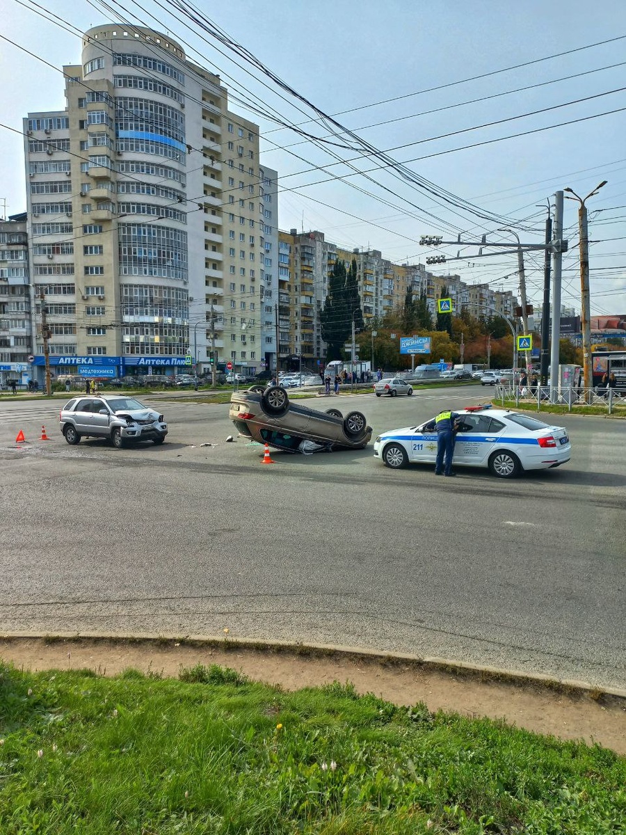 На пересечении проспекта Победы и Молодогвардейцев ДТП, там перевернулась машина, а перекресток встал в пробку