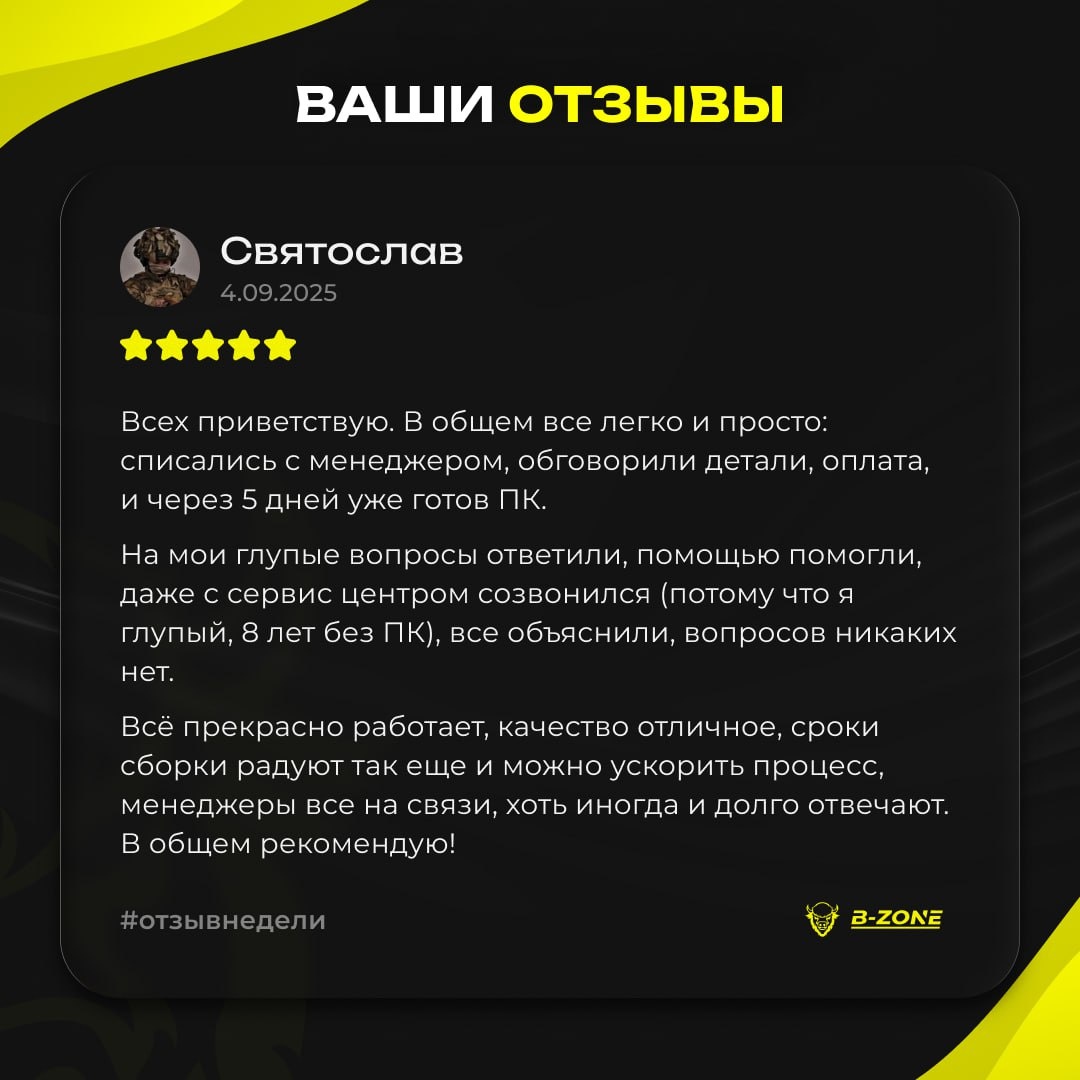 Классный отзыв! Святослав, благодарим за подробный рассказ о вашем опыте! 💛 Нам очень важно, чтобы каждый клиент чувствовал нашу поддержку на всех этапах: от консультации до запуска ПК 😊 Продолжайте делиться эмоциями и фотографиями ваших новых сборок!