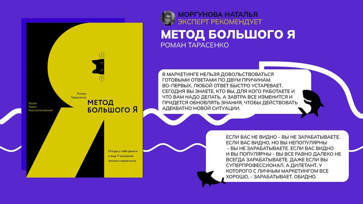 СЕГОДНЯ В КНИЖНОЙ РУБРИКЕ — БОЛЬШОЕ ОБНОВЛЕНИЕ! И рекомендация книги не от нас... а от эксперта отрасли — Моргуновой Натальи Дмитриевны (АРТИС ЭКСПО): 🔜 Николай Тарасенко «Метод большого Я» Многие хотят стать знаменитыми, но единицы готовы вкалывать и работать над собой. Если вы тоже не готовы, то не читайте эту книгу. 🟡 Но экономика внимания точно не любит ленивых. В книге подробно рассказывается, как использовать собственные навыки и качества эффективно, чтобы выделиться в современном мире, где внимание становится самой важной валютой. Она поможет нам задать себе главные вопросы о личном маркетинге и тщательно обдумать ответы на них. В итоге она побудит нас активно мыслить, поскольку неприятно получать меньше, чем мы на самом деле можем заработать. 🦈, если «большое Я» внутри вас просит карьерного продвижения и личного бренда. 🔥, если понимаете, что в XXI веке харизма — это тоже навык. Акулы Зообизнеса. Канал, который смотрит весь зоорынок.