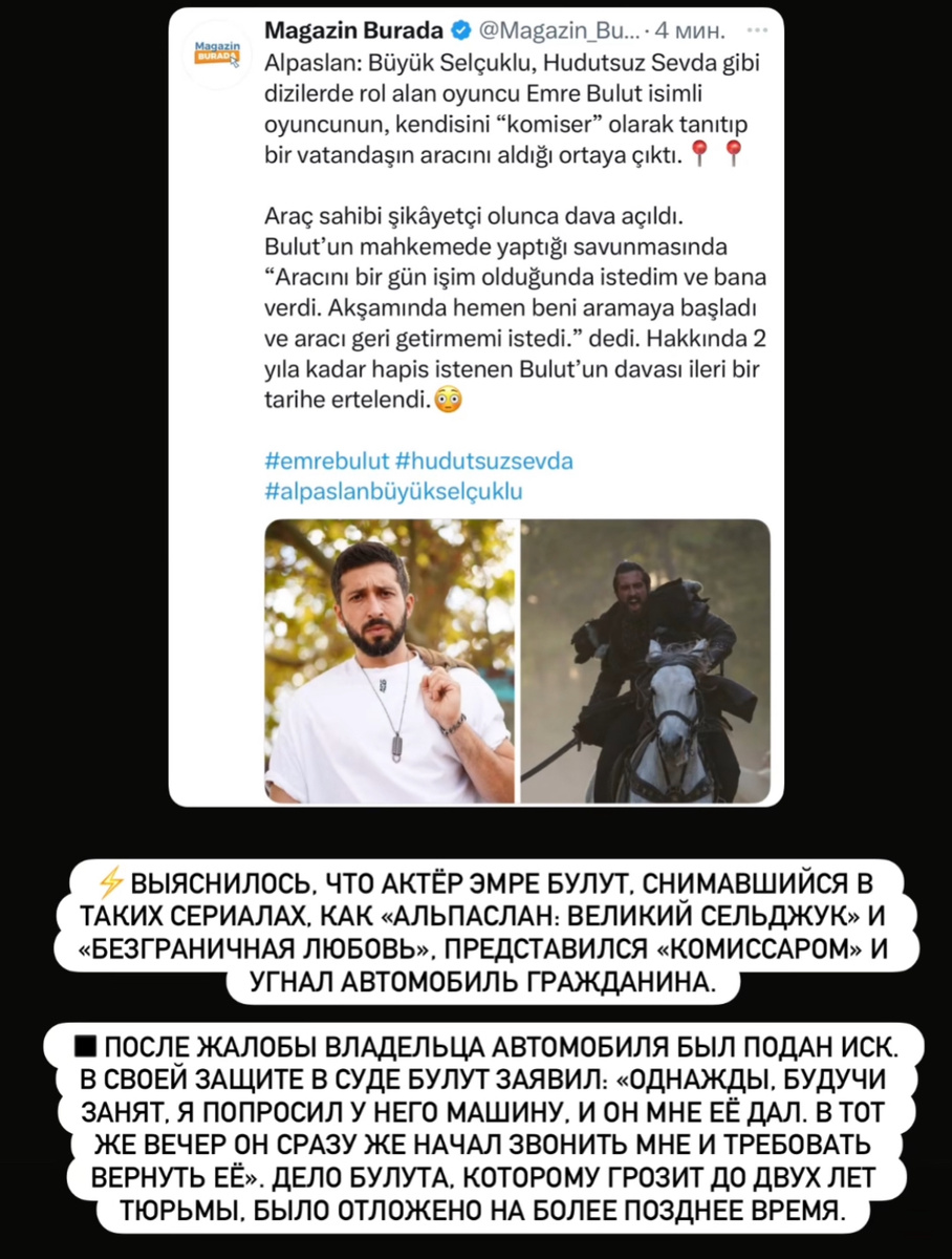 Приветствую вас, мои медовые розы💖🌹 Как обстоят дела у вас с налогами на имущество? 😉😂 На госуслуги начинают квитанции приходить на квартиры и авто. Что касается последнего, то у нас тут вот, новости 👇 А вот как объясняет ситуацию сам актер 👇 ✅ Мать Беллы Хадид, Иоланда, поделилась серией снимков дочери из больницы. Сейчас модель вновь сталкивается с обострением болезни Лайма. «Невыносимо видеть, как страдает моя Белла. Но её боль несравнимо тяжелее моей», — написала Иоланда в сетях. Какие загадочные болезни случаются с турецкими актерами.. я раньше о таких даже не слышала. ✅ Из хороших новостей 👇 Из плохих - вот рейтинг👇 ✅ В преддверии сериала, кстати, в сети активно закрутилась информация про красивый поступок от Хандэ 👇 Некоторые тут же связали одно с другим и решили, что поступок Хандэ некий «прогрев» аудитории сериала. Как бы там ни было, главное - что детям хорошо! На этом, пожалуй, пока что все на сегодня. Понедельник - день тяжелый😉😂 А я вам желаю, невестки