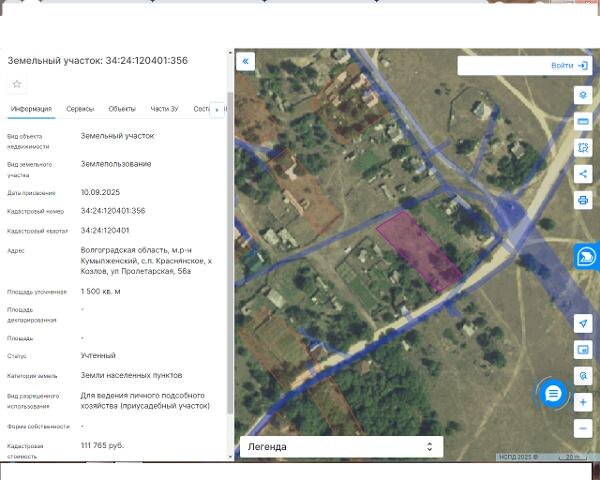Название: Земельный участок с кадастровым номером 34:24:120401:356 площадь 1500 по адресу Волгоградская область, м.р-н Кумылженский, х Козлов, ул Пролетарская, 56а Канал: Госземля Волгоградская область Область: обл Волгоградская Район: м.р-н Кумылженский Населенный пункт: с.п. Краснянское, х Козлов, ул Пролетарская Локация: Смотреть на карте ВРИ: Жилая застройка Кадастровый номер: 34:24:120401:356 Кадастровая стоимость: 111765.00 Вид сделки: Аренда Площадь: 1500 м² Начальная цена: - руб. Дата завершения: 21.10.2025 Подробнее: ГИС ТОРГИ #госземля #земляотгосударства #земля #земельныйучасток #земельныеторги #торги #аукцион #арендаземли #аренда #волгоградскаяобласть