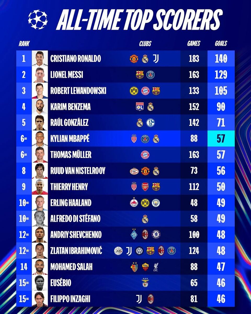 Лучшие бомбардиры ЛЧ 🇫🇷Мбаппе мчится на вершину👑 @мировой Футбол