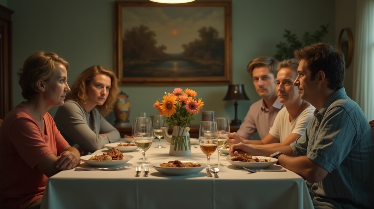 Света, двоюродная сестра её мужа, сидела за столом с таким видом, будто только что попросила подать соль. Рядом её муж Григорий одобрительно кивнул, а их сын Артём, лениво ковыряя телефон, буркнул: