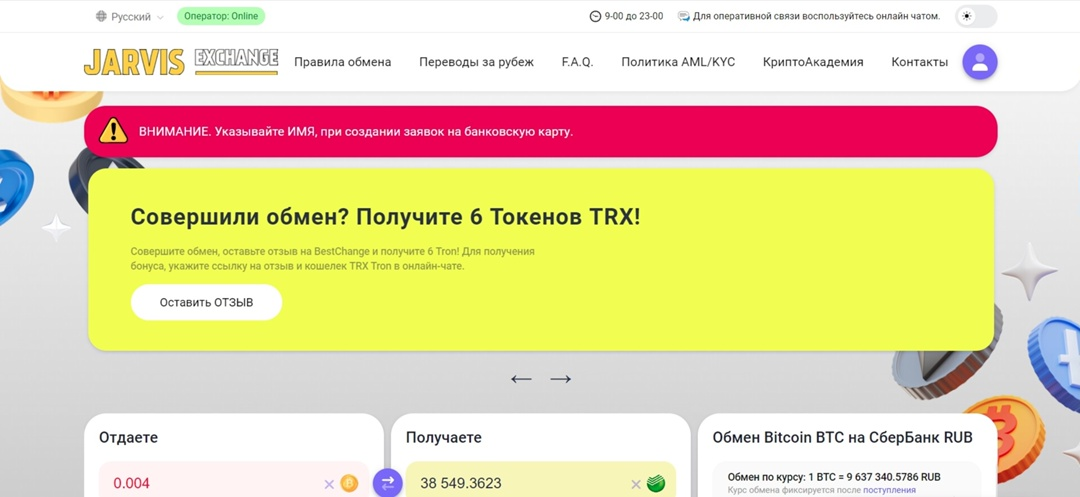 Jarvis Exchange занимает лидирующие позиции на рынке криптовалютных обменных сервисов благодаря уникальному сочетанию технологических инноваций, высокой безопасности и клиентоориентированности . Платформа рекомендовала себя как надежный партнер для трейдеров всех уровней, учитывая более широкий спектр услуг по обмену криптовалют и фиатных средств с максимальной выгодой и безопасностью.