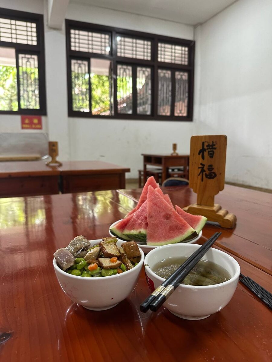 Надеюсь, вы ждали апдейтов по моему путешествию! Сегодня исторический момент всего трипа: я наконец-то гуляла по своей деревне, поехала в знакомые горы и забралась в любимый монастырь 😢 Мы собирались поехать туда на байках, как когда-то в студенческие времена, но все баешные закрылись, остались только электронные табуретки, которые по китайскому айди и на них нельзя в парк 😩 В итоге поехали на такси, потому что НАМ НАДО БЫЛО УСПЕТЬ — в 11:30 в монастыре бесплатный веганский обед! Мы чуть опоздали, но нам даже дали арбуз, а потом какие-то китайцы-фотографы прицепились и сделали мне миллиард фоток… А вот потом мы внепланово…. пошли по горным чайным плантациям до другого храма и еще дальше по тропе (я там уже была, но тогда она была платной, а теперь нет, грех не пойти!). Я прикладываю вам огромный видос, но он красивый…. А вечером зашла наконец-то в свой вузик, где я когда-то училась! 🥺 Такая ностальгия, хотя и кучу всего обновили и построили, но мы нашли тот самый бин (блин), что