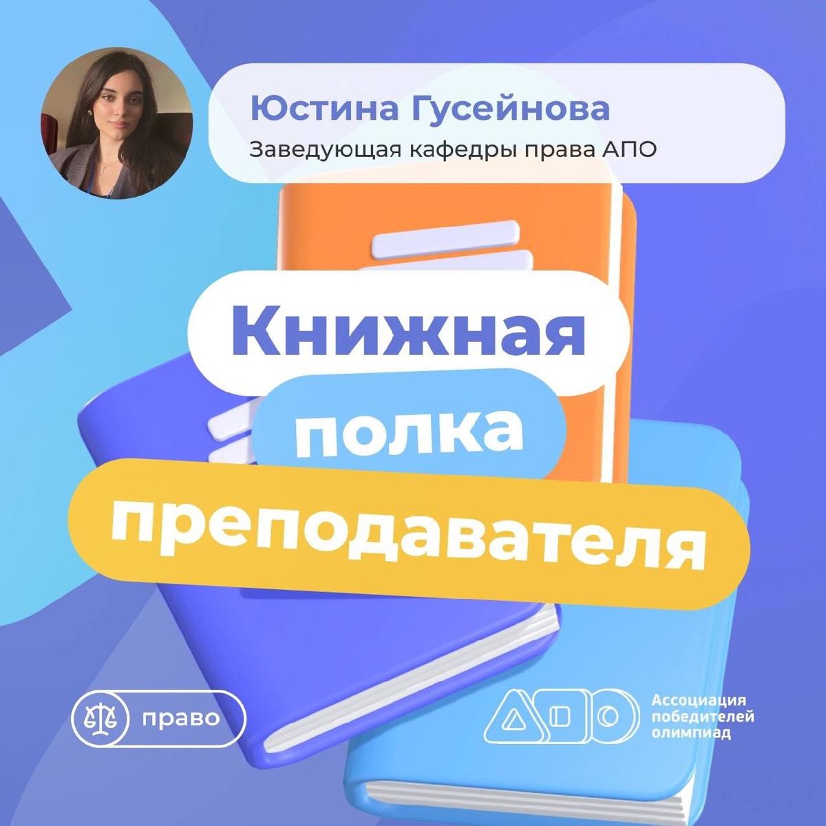 🤩Что читает заведующая кафедрой права АПО? Книги — это не только подготовка к олимпиаде, но и вклад в общее развитие. Сегодня своими рекомендациями делится заведующая кафедрой права АПО Юстина Гусейнова. ➿➿➿➿➿➿➿➿➿➿ На её полке — классическая и научная литература, которая не только помогает в работе, но и расширяет кругозор. Смотрите подборку в карточках! А всем, кто хочет глубже разбираться в законах и праве, рекомендуем подписаться на канал в Telegram: t.me/apo_law Кафедра запустила свой телеграм-канал совсем недавно, но уже скоро там появится много всего интересного!