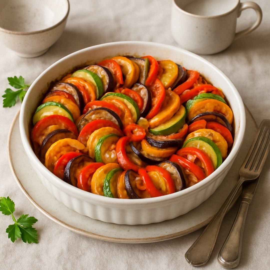 Осенний рататуй с овощами Ингредиенты ⤵️ 🔸 Кабачок – 1 шт. 🔸 Баклажан – 1 шт. 🔸 Тыква мускатная – 300 г 🔸 Помидоры – 3 шт. 🔸 Перец болгарский – 2 шт. 🔸 Лук репчатый – 1 шт. 🔸 Чеснок – 3 зубчика 🔸 Масло оливковое – 3 ст. л. 🔸 Томатная паста – 2 ст. л. 🔸 Соль, перец, прованские травы – 1 щепотка Приготовление 🍆 1. Духовку разогреть до 190°C. Форму смазать маслом. 2. Овощи нарезать: кабачок, баклажан, тыкву и помидоры — кружками; перец и лук — полукольцами. Чеснок измельчить. 3. На дно формы выложить лук и перец, добавить томатную пасту, чеснок, травы, соль, перец и масло. Перемешать. 4. Поверх соуса красиво выложить кружки овощей, чередуя цвета. 5. Сбрызнуть маслом, приправить травами. 6. Накрыть фольгой, запекать 40 мин. Снять фольгу, готовить еще 20 мин до румяности. 7. Подавать горячим или холодным! Рецепт дня #рататуй #овощной_рататуй #осенние_овощи #кабачок #баклажан #тыква #помидор #перец #лук #ужин