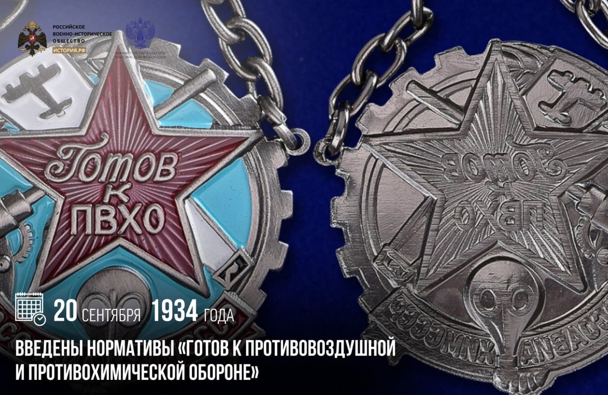 20 сентября 1934 года введены нормативы «Готов к противовоздушной и противохимической обороне»