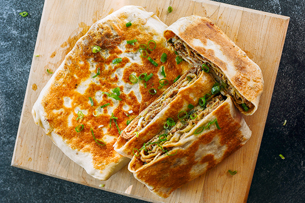 Если слово «мясной пирог» вызывает у вас образ тяжёлого теста с фаршем внутри — забудьте. В китайской кухне пироги совсем другие. Слоёное тесто, мягкое внутри и поджаристое снаружи, тонкая начинка из сочной свинины и зелёного лука — и всё это без духовки. Этот пирог жарится на сковороде, не требует сложной лепки и получается таким, что его хочется есть руками прямо с разделочной доски. Он хорош как сытный перекус, как альтернатива бутерброду, как блюдо на завтрак или к ужину. Да даже холодным он остаётся вкусным. Такие пироги популярны в северном Китае. Там, где мука важнее риса. У каждого региона — своя версия: где-то их делают маленькими и круглыми, как баоцзы; где-то — похожими на толстые луковые лепёшки с мясной начинкой внутри. Этот вариант — многослойный пирог, в котором фарш распределяется тонким слоем между свёрнутыми пластами теста. В результате он не выглядит тяжёлым, но остаётся сочным, с выраженным мясным вкусом и хрустящей корочкой. растительное масло для обжаривания тесто