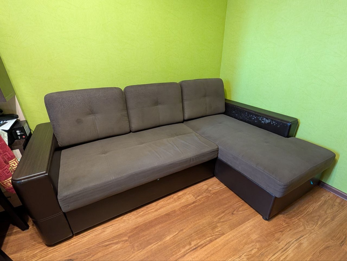 Отдам угловой раскладной диван Размер: 250х160 см (в разложенном виде спальное место около 200х145 см). Механизм: раскладывается вперёд, дополнительный матрас выдвигается. Есть большой бельевой ЯЩИК. Обивка комбинированная: ткань + экокожа. Состояние: крепкий каркас, механизм работает исправно, но есть заметные потёртости на экокожаных вставках и ящик чуть выломан (см. фото) Район вблизи метро Парнас, Есть грузовой лифт, могу помочь с разборкой @screga Серёга, @screga (#ID426535832)