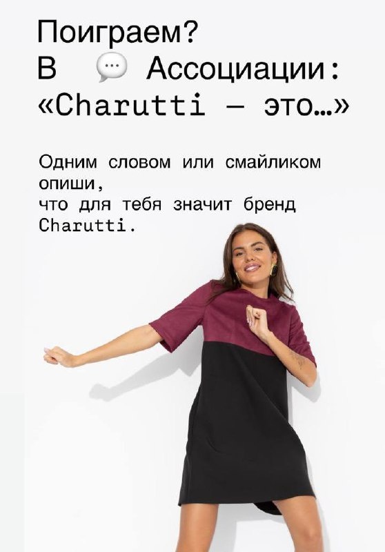 Поиграем? B Ассоциации : «Charutti - это...» Одним словом или смайликом опиши, что для тебя значит бренд Charutti. ✨ Напиши в комментариях, а мы выберем самые креативные ответы и проведем розыгрыш сертификата на 500Р в этот понедельник ❤️