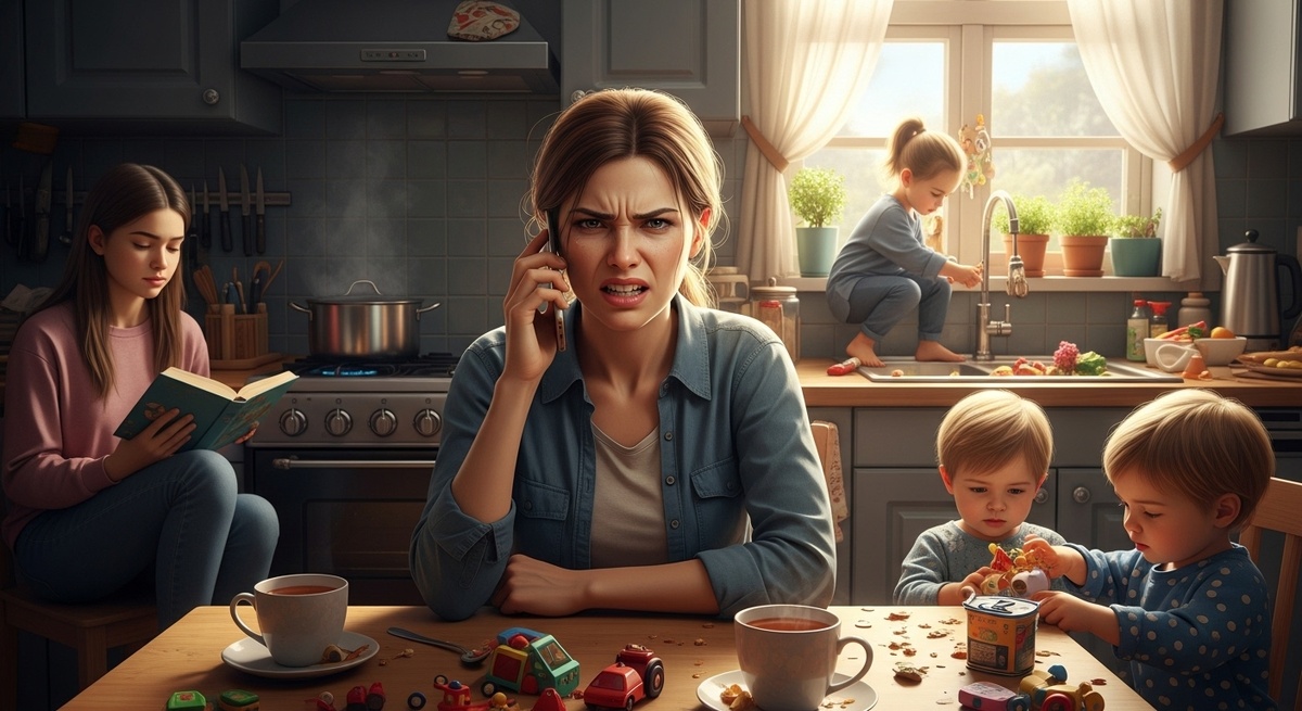 Ольга едва не выронила половник. Бульон в кастрюле весело булькал, вот-вот нужно было закидывать картошку. Из коридора доносились визги и смех: близнецы Андрейка и Стёпа, четырёхлетние сорванцы, наперегонки пытались надеть варежки. Из комнаты старшая дочь Катя громко спрашивала: