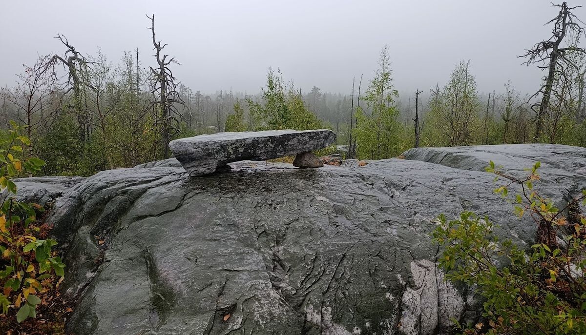 На удивление о моросящем дожде я быстро забыла. Наш гид Григорий увлеченно рассказывал об истории этого места, предлагая на выбор научную и антинаучную версии о сейдах (камнях на «ножках»), «мертвом» лесе, лестнице в небо, огромных валунах и странных деревьях, словно растущих корнями вверх. Когда Григорий скатывался на мистические сюжеты, наша группа бросала делать бесконечные фотографии и плотнее окружала гида.
