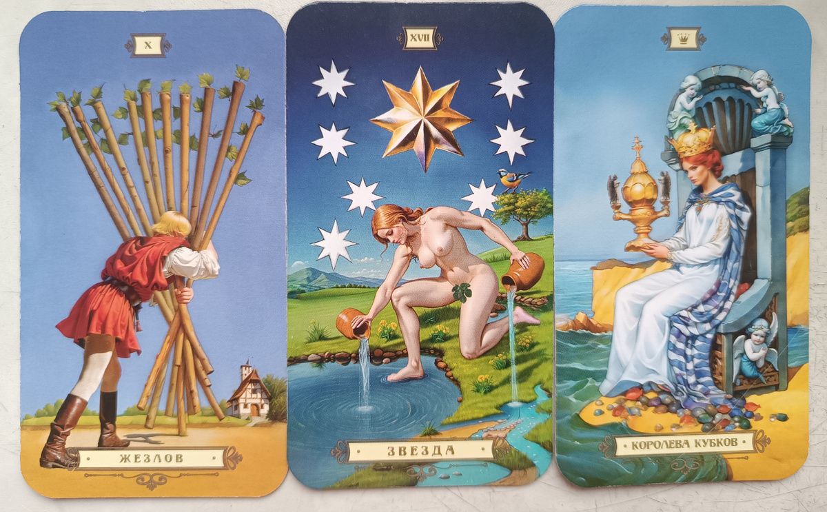 Ну что, настроили свой внутренний приемник на волну Вселенной? 📻 Отлично! Тогда давай достанем первую карту. Наш вопрос тут такой: «Какой шаблон или груз мне пора отпустить, чтобы освободить место для любви?». Готовься… потому что ответ может быть таким же прямым и недвусмысленным, как утренний будильник в понедельник. Итак, встречаем — Десятка Жезлов.