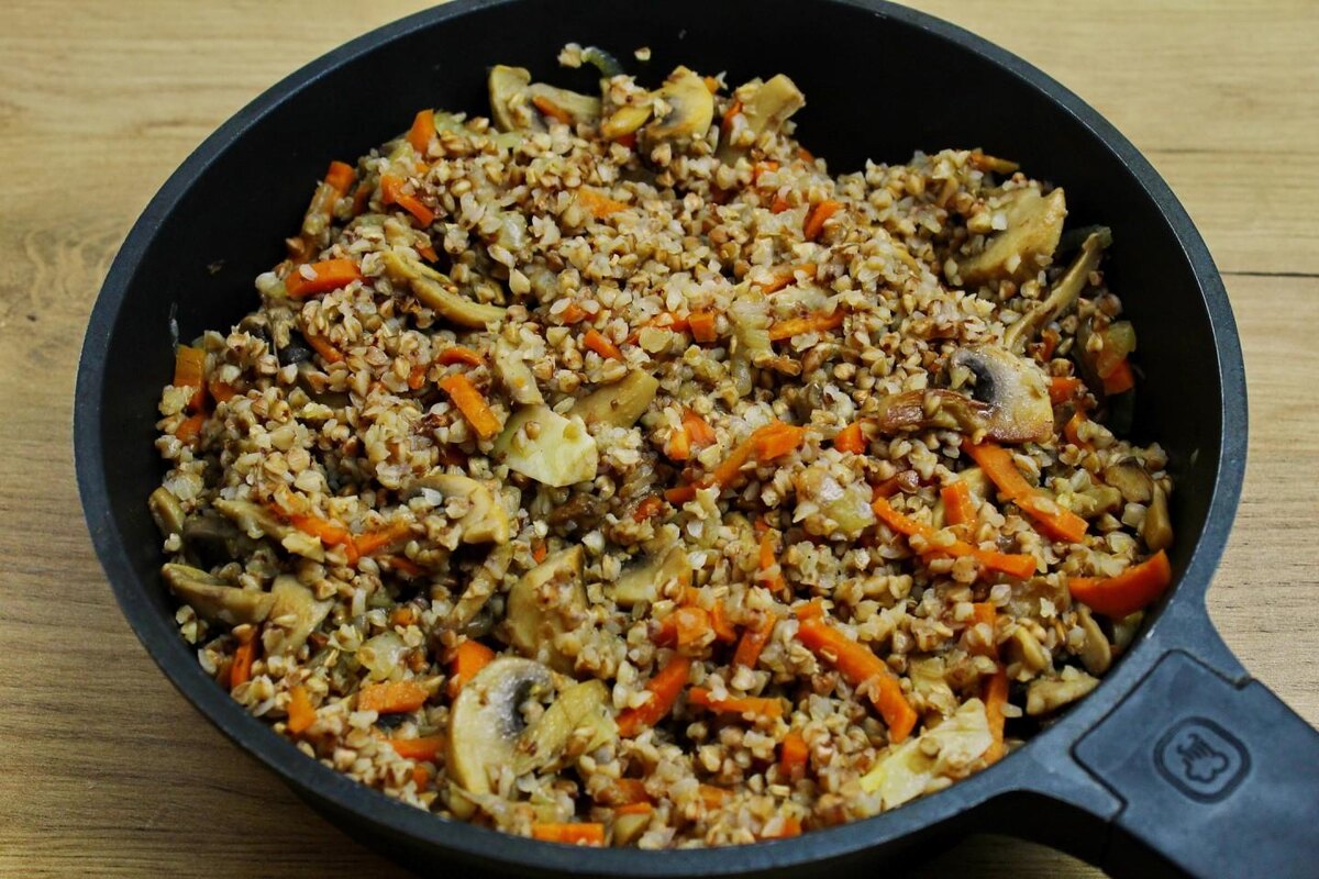 · Полезно: Гречка — чемпион по содержанию белка, железа и магния. Это медленные углеводы, которые дают длительное чувство сытости. Грибы — источник селена и витаминов группы B.