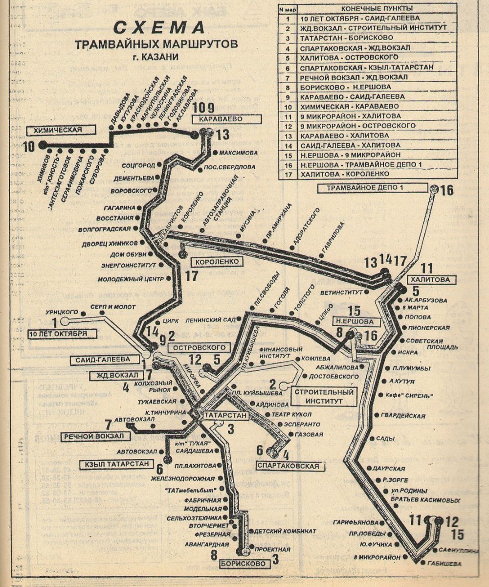 17 трамвайных маршрутов 1995-го