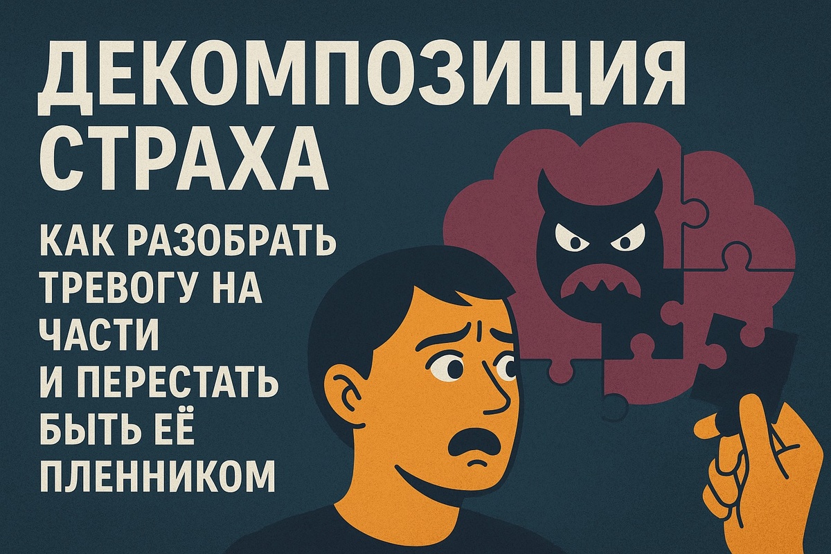 Когнитивно-поведенческая терапия (КПТ) предлагает простой, но мощный метод — декомпозицию страха. Это процесс, в котором мы разбираем тревогу на составляющие. И чем чётче мы видим, из чего именно состоит страх, тем легче с ним справляться.