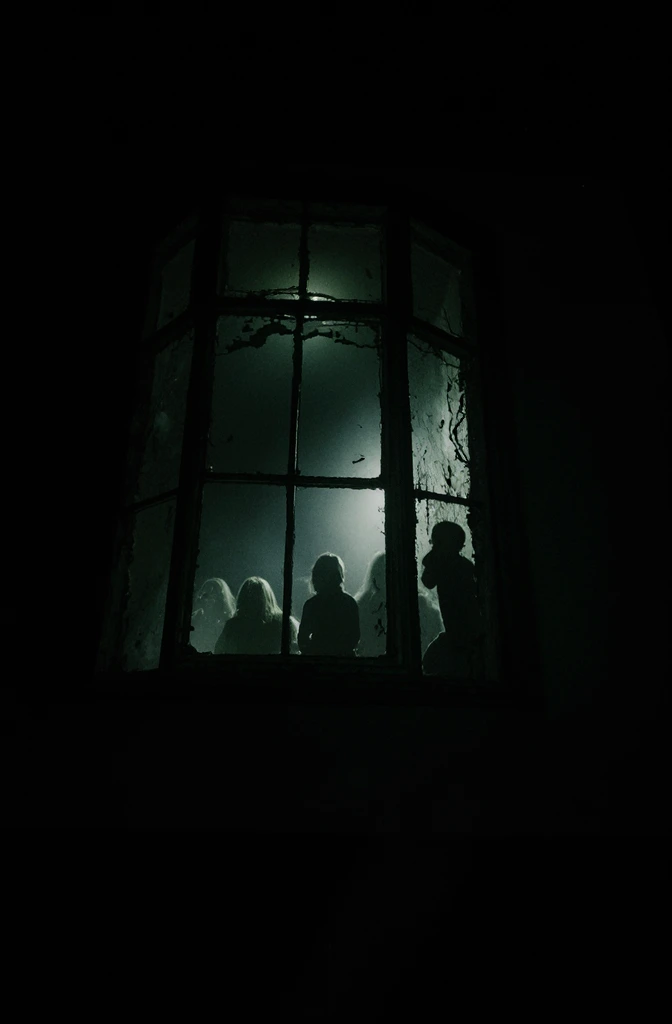 Подростки включили фонарики и начали осматривать комнаты. В гостиной они заметили старую фотографию на стене — на ней была изображена та самая семья, о которой ходили слухи. Внезапно фонарик одного из ребят погас, и в этот момент они услышали тихий шёпот.