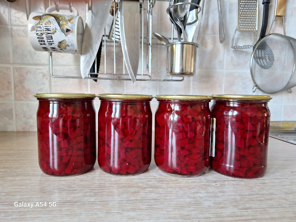 Этот рецепт является полуфабрикатом, по этому специи я не добавляю. Ингредиенты : Инвентарь: 1. Подготовьте свеклу Тщательно промойте свеклу под холодной водой. Отваривайте её до полной готовности (около 40-60 минут). Готовность проверяйте ножом — он должен легко входить в корнеплод. Остудите свеклу, снимите кожуру ножом или руками под струёй воды. 2. Нарежьте свеклу Нарежьте свеклу небольшими квадратиками или произвольными кусочками, удобными для дальнейшего использования. 3. Приготовьте маринад Налейте в кастрюлю или тазик 1 литр воды. Добавьте столовую ложку сахара с горкой и чайную ложку соли. Поставьте емкость на плиту и доведите до кипения, постоянно помешивая, чтобы сахар и соль полностью растворились. Когда вода закипит, добавьте 50 мл столового уксуса 9%. 4. Заливка свеклы Положите подготовленную нарезанную свеклу в кипящий маринад. Варите 2 минуты после закипания. 5. Разложите по банкам и герметично закройте Быстро разложите горячую свеклу вместе с маринадом по предв