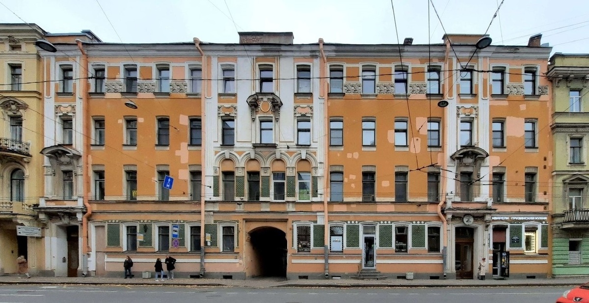 Забавное совпадение: в доходном доме Шведерского на Большой Пушкарской, дом 45. Это место уже несколько раз встречалось в блоге. Была здесь большая барская квартира, принадлежавшая самому Шведерскому. Но самой первой была стильная трешка на втором этаже. Квартиру эту продают до сих пор, и за пару лет она претерпела смену интерьера и повышение цены до 24,5 миллионов. Забавно было на днях встретить в продаже соседнюю по площадке от этой квартиру. Она не менее приятная, чуть меньше по площади и по цене. Та же красивая парадная с огромным зеркалом, отреставрированная в 2020 году, второй этаж. Две комнаты, площадь 41,5 метра, высокие потолки 3,5 м высотой, прихожая 5 метров на месте кухни, которую вынесли в комнату, совмещенный миниатюрный санузел. Квартира по состоянию хороша, если отбросить непонятную перепланировку кухни, всё весьма приятно. Лепнина на потолках, приведенные в порядок старинные двери и окна, шикарного вида печь. Комнаты — гостиная с кухней и небольшая спальня. Квартира я