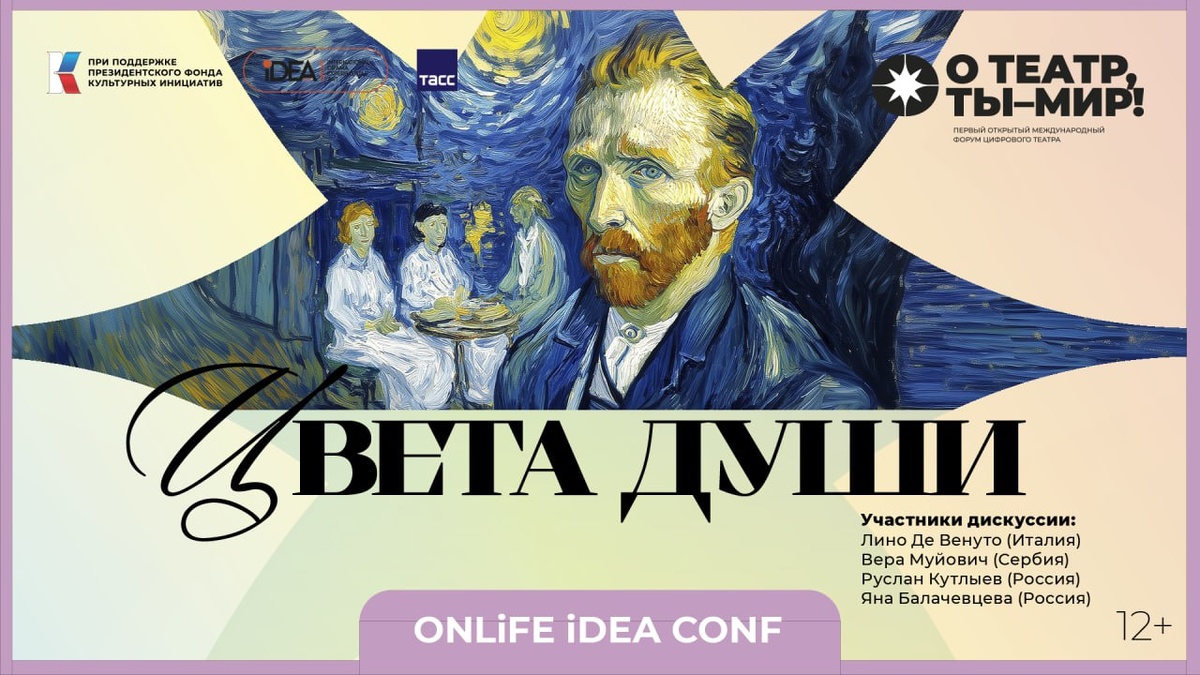 🖥 Смотрите новый выпуск ONLiFE iDEA Conf, посвященный цифровой постановке Руслана Кутлыева «Цвета души» по ссылке. 📍IL TEATRINO DELLA COLONNA Автор пьесы и исполнитель роли Ван Гога — Лино Де Венуто (Италия 🇮🇹) 🎬 Режиссер — Руслан Кутлыев (Россия) Постановка «Цвета души» основана на эпистолярном наследии выдающегося художника Винсента Ван Гога. «Письма к Тео» — универсальное свидетельство конца XIX века, одно из самых трогательных и глубоко личных, сравнимое по уровню с величайшими текстами мировой литературы. В беседе принимают участие: ✔Лино Де Венуто — актер, режиссер, драматург, автор пьесы «Цвета души» и исполнитель роли Винсента Ван Гога (Италия) ✔Руслан Кутлыев — режиссер ONLiFE постановки «Цвета души», главный режиссер Международного фестиваля цифрового театра Onlife iDEA Fest (Россия) ✔ Вера Муйович — актриса, президент Международного фестиваля Muzetea (Сербия) ✔Яна Балачевцева — генеральный продюсер форума цифрового театра «О театр, ты — мир!» (Россия) Переводч