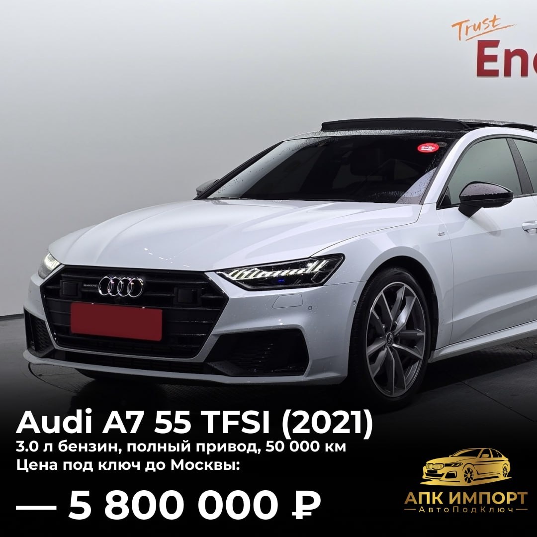 🚘 Audi A7 55 TFSI (Quattro, Premium) 📍 Основные характеристики: 🔹 Год выпуска: 12/2021 🔹 Пробег: 50,000 км 🔹 Двигатель: 3.0 л бензин турбо 🔹 Привод: полный (quattro) 🔥 Элегантное 4-дверное купе бизнес-класса с выразительным дизайном. Силовая установка Mild Hybrid (MHEV) позволяет глушить двигатель на ходу для экономии топлива без ущерба для комфорта. ➡️ Комплектация Premium включает: матричные LED-фары, панорамную крышу, проекционный дисплей, виртуальную приборную панель, мультимедиа MMI с сенсорным управлением и поддержкой Apple CarPlay, вентиляцию и подогрев всех сидений, аудиосистему Bang & Olufsen и ассистентов вождения. ⬇️ Больше фотографий в комментариях 💰 Цена: 5,800,000 рублей под ключ с доставкой до Москвы и полным комплектом документов! 🔗 Ссылка на объявление 🚗 Пишите в личные сообщения для консультации и заказа! 🇰🇷#изКореи #апкимпорт #Audi