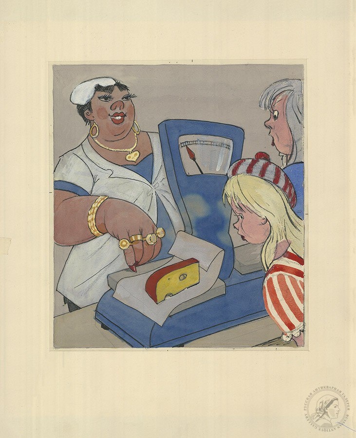 Русская антикварная галерея Сайт: rus-gal.ru #Иорш Г. С. - #Карикатура «Развес» #СССР, 1985 год. #Акварель, бумага, карандаш, тушь. 40 Х 49,5 см #Соцреализм, #Карикатура Подробнее: https://rus-gal.ru/works/karikatura-razves/