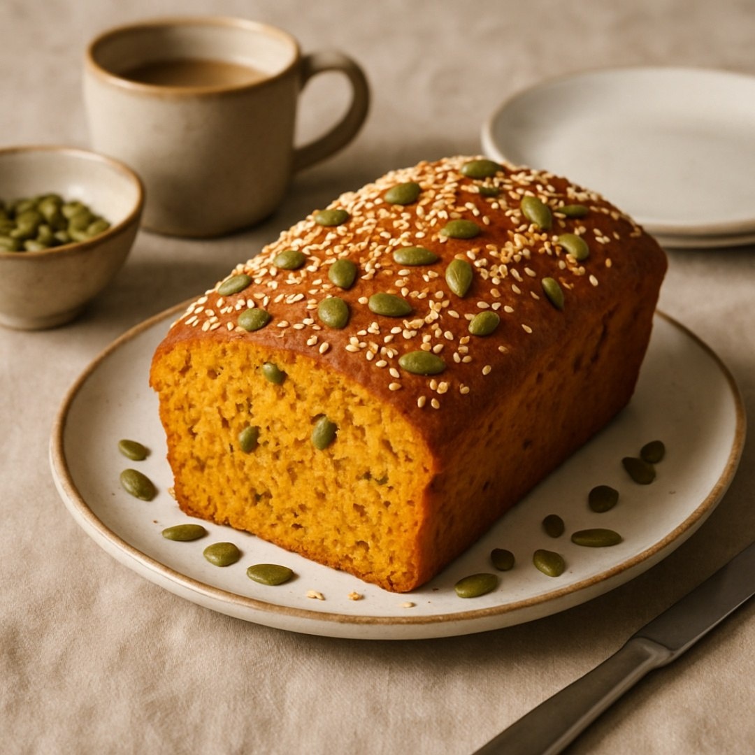 Тыквенный хлеб Ингредиенты ⤵️ 🔸 Тыквенное пюре – 250 г 🔸 Мука пшеничная – 400 г 🔸 Дрожжи сухие – 7 г 🔸 Мёд – 2 ст. л. 🔸 Масло оливковое – 3 ст. л. 🔸 Соль – 1 ч. л. 🔸 Кунжут – 1 ст. л. 🔸 Семена тыквы – 1 ст. л. Приготовление 🍞 1. В тёплой воде растворить мёд и дрожжи, оставить на 10 минут до пены. 2. В миске смешать муку с солью. Добавить тыквенное пюре, дрожжевую смесь и оливковое масло. Замесить эластичное тесто. 3. Накрыть тесто полотенцем, оставить в тёплом месте на 1-1.5 часа until удвоится в объеме. 4. Обмять тесто, сформировать батон, выложить на противень с пергаментом. Посыпать кунжутом и тыквенными семечками. 5. Оставить на 30 минут для расстойки. 6. Разогреть духовку до 180°C. Выпекать 35-40 минут до золотистой корочки. 7. Остудить на решётке, нарезать. Рецепт дня #домашний_хлеб #тыквенный_хлеб #тыква #хлеб #кунжут #тыквенные_семечки #выпечка