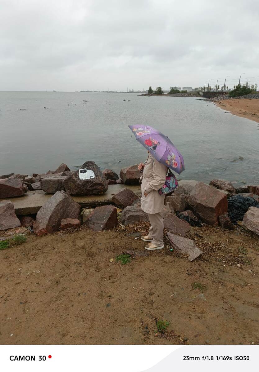 В нашем городе дождь всё идёт и идёт.. Была такая песня, пели её и Майя Кристалинская и Гелена Великанова. Кто сейчас помнит и знает этих замечательных певиц. Только старшее поколение. А когда-то их голоса звучали во всех квартирах, домах, из радио, висящих на стене, с пластинок проигрывателя, да и просто люди мурлыкали себе под нос нежные и задушевные песни. Задушевные. Значит те, что брали за душу. А сейчас есть современные задушевные песни? Может знает кто, есть ли они. Если услышишь приятную, грустную или ритмичную музыку, то как правило, это перепевка, ремейк как теперь говорят, старой песни. Так вот, в нашем городе дождь. Но гулять нада, и мы, вооружившись зонтиками отправились гулять. Путь держали на новую прогулочную зону, не так давно обустроенную вдоль берега залива в новостройках и в пешей доступности для нас. Оживлённая и многолюдная в хорошую погоду дорога была практически пустой, только светофоры светили для редких машин. Залив встретил нас серыми красками и в