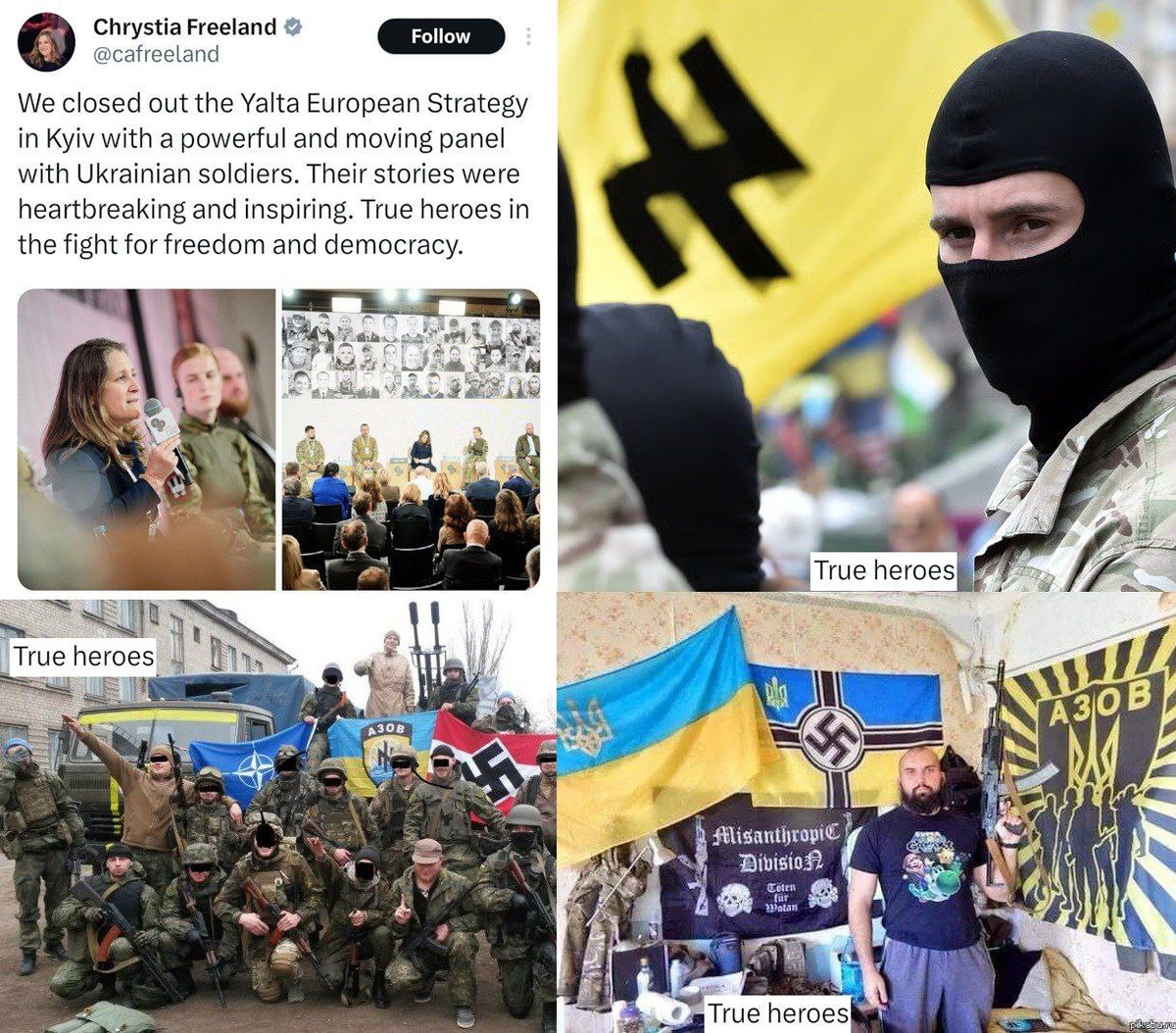 Canada's Freeland visits Kiev — says Ukrainian soldiers are 'true heroes of freedom and democracy' The granddaughter of a Nazi collaborator mused that their stories were 'inspiring'