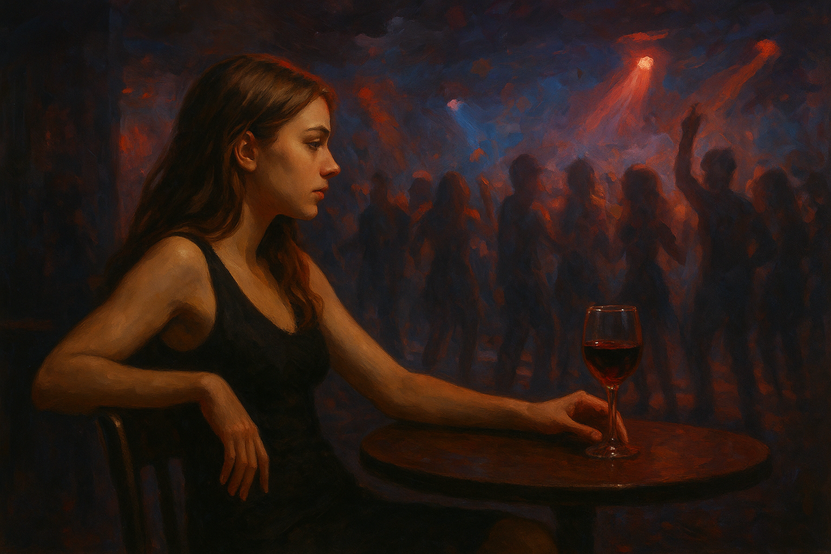 Казалось, именно это было единственной возможностью вспомнить, обдумать, проанализировать... забыть. Напряженное созерцание красок (которыми играла музыка в бокале) делало ее недосягаемой. И лишь черствый, равнодушный наглец мог ворваться в её раздумья.