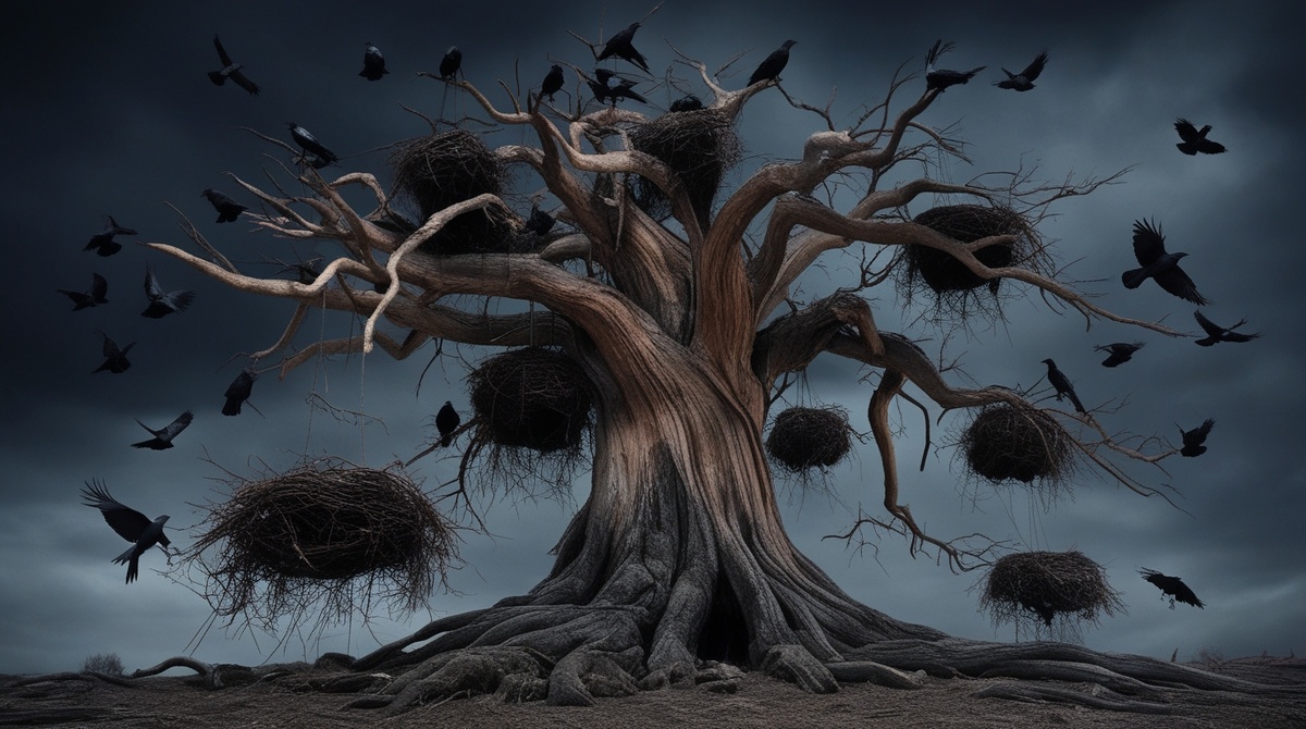 Эта жуткая история случилась с подругой моей мамы, тетей Таней, много лет назад. Тетя Таня в молодости была настоящей красавицей: живая, всегда веселая, с густой черной косой до пояса. Жила она в частном секторе нашего городка, и прямо у ее палисадника росло старое, огромное дерево, на котором из года в год гнездились вороны. Местные его так и прозвали — Воронье дерево. Каждый день летом, Таня обедала у распахнутого настежь окна, наслаждаясь зноем. Но однажды все изменилось. На подоконник сел ворон и уставился на нее своими черными как ночь глазами. Таня решила, что он голодный, и бросила птице кусочек хлеба. Так это и вошло в ее привычку. Сначала все казалось безобидным занятием, но однажды вечером все изменилось. Днем Таня вышла из душа, и от духоты не стала сушить волосы — так и оставила их распущенными, мокрыми, прилипшими к спине. В тот вечер дома были она, ее двоюродная сестра и брат с другом. Родители уехали в областной центр — отцу делали операцию. За ужином Таня ела так, будт