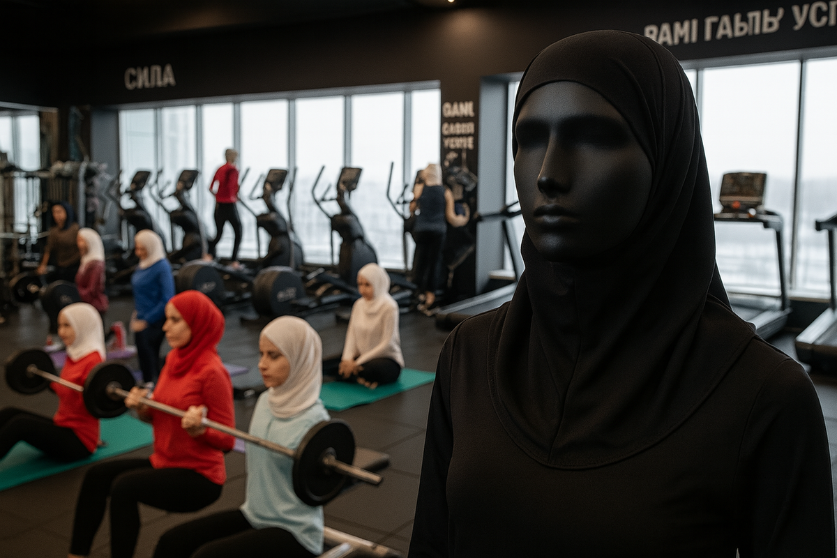 В итоге мы имеем молчаливое противоречие: женщинам — строгие правила, тишина и манекен в хиджабе; мужчинам — свобода наслаждаться зрелищем, которое, если следовать букве шариата, им вроде как и видеть не полагается. Получается, что для сильного пола действует особая «фитнес-амнистия».