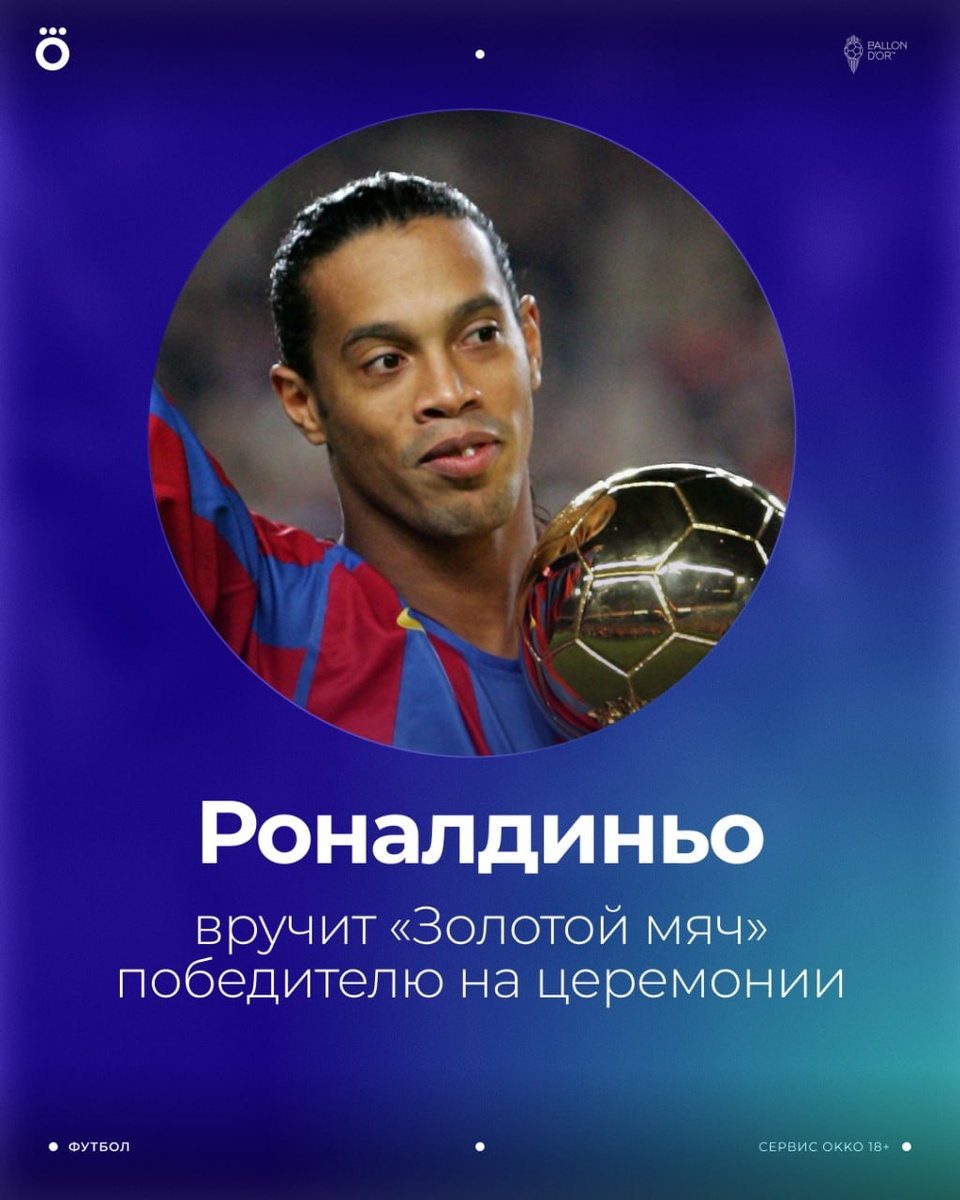 👏🏻 Роналдиньо вручит «Золотой мяч» лучшему игроку сезона. Информацией делится COPE.