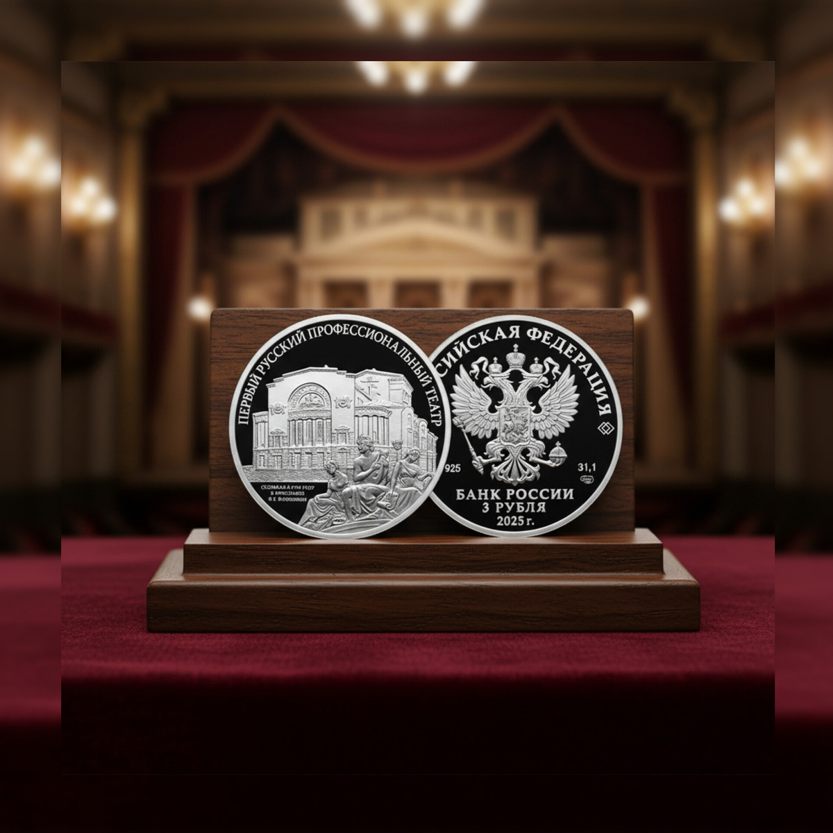 🎭 Знаете ли вы, что первый профессиональный театр в России появился не в Москве или Петербурге? История этого театра началась в июле 1750 года в городе Ярославле с первой театральной постановки молодой труппы во главе с Федором Волковым, сыном костромского купца. Революция в русском театральном искусстве До этого момента в России существовало множество театральных трупп — дворцовых, домашних, школьных. Но именно театр Волкова стал первым, который получил собственное здание, постоянный репертуар, был общедоступным, а его актеры — впервые в истории страны! — стали получать зарплату за свою работу. Этот исторический момент теперь увековечен в новой памятной монете Банка России. О самой монете: - Серебро 925 пробы, 31,1 г - Номинал: 3 рубля, качество пруф - Диаметр: 39 мм, тираж: 3000 штук - Серия «Культура и Искусство» Что изображено на монете На реверсе запечатлено здание легендарного Российского государственного академического театра драмы имени Федора Волкова и аллегорическая