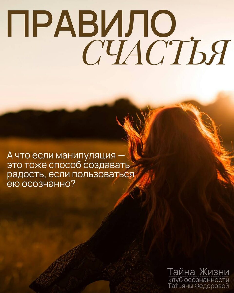 Манипуляция и подарок [Правило счастья] Манипуляция — это не только контроль. Это ещё и умение дарить людям чувство удовлетворения. Когда человек соглашается на вашу просьбу, он чувствует: «Я сделал добро, я молодец». И этим вы делаете его счастливее. ❓А что если манипуляция — это тоже способ создавать радость, если пользоваться ею осознанно?