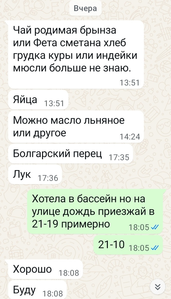 Вчера(в субботу) в восемь утра я сделала заказ в "Магните", потому что ДМ прислал мне накануне список продуктов в Вацап того, что у нас закончилось😁