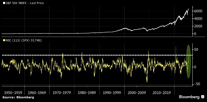 С начала апреля рыночная стоимость индекса S&P 50 увеличилась на 15 триллионов долларов В 2025 году рекордный максимум был переписан 27 раз. Согласно данным, собранным Bloomberg, рост S&P 500 на 34% за последние пять месяцев, вызванный ралли акций крупных технологических компаний, является рекордным, таких случаев с 1950 года было всего 4.