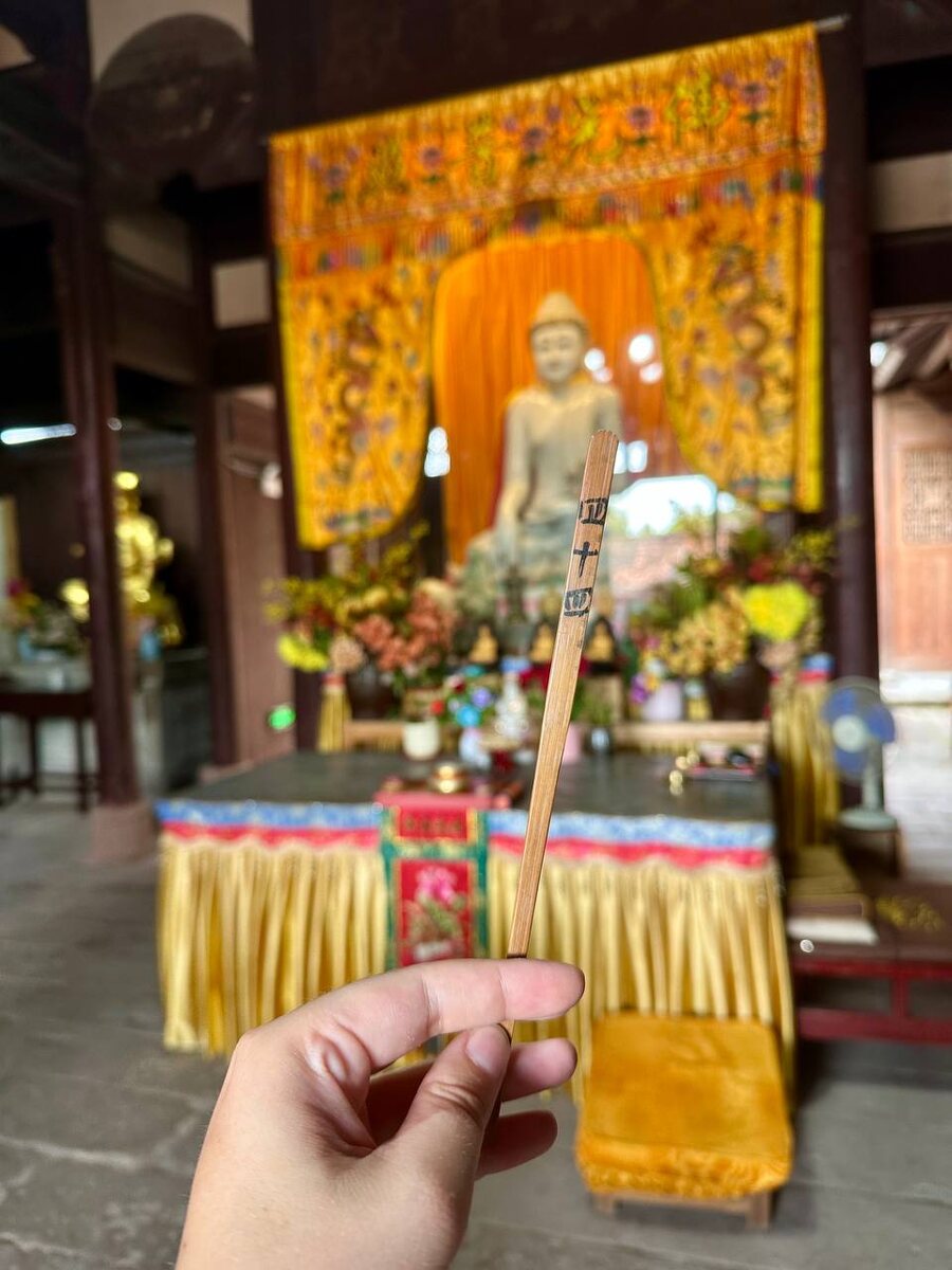 В китайских храмах (в Фуцзяне точно) зачастую можно получить предсказание, и на самом деле, это довольно просто. Вот вам гайд, как это сделать быстро без смс и регистрации: ♥️ Сначала берете палки в банке на столике, обычно они на виду стоят. Встаете на колени, загадываете желание Будде и спрашиваете его, исполнится ли. Начинаете трясти палки — МОЩНО ТРЯСТИ. Одна палка должна выпасть — ура, она вам и нужна! ♥️На палке есть номер. Идете к стене, где висят бумажки (или подходите к смотрителю храма). Ищете свой номер на бумажках — и срываете ее. Это можно делать! Если бумажек нет, то покажите палку смотрителю. Он скажет положить палку на место, кивните, покажите листочек. Когда листочек дадут — это победа (но палку верните!!!) 🦄 ♥️Теперь самый сложный кейс: расшифровка. На бумажках много чего написано, но оч мудренно. Там и вэньянь, и выдержки из Ицзина, и еще ченить. Вам нужен правый край или любой иной край, где есть такая НАДПИСЬ. Она означает вашу удачу в исполнении этого желания.