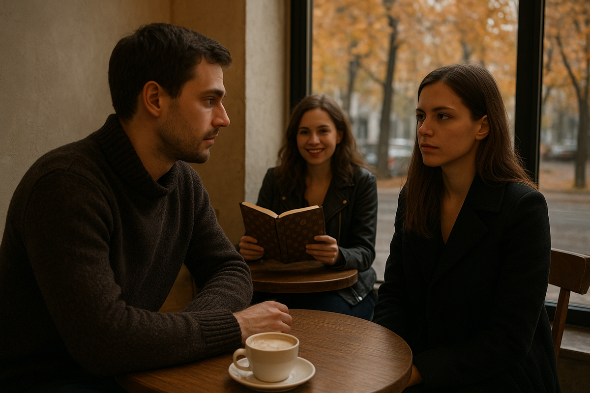 Андрей сидел у окна маленького кафе на Патриарших и делал вид, что работает. На экране — чертежи жилого комплекса, но в голове — пустота. Он уже устал от однообразия дней, когда за окном серое небо, в ушах музыка без слов, а жизнь кажется бесконечной рутиной.