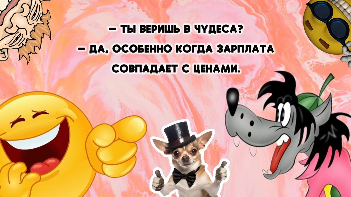 1 — Доктор, у меня болит голова. — Примите таблетку. — От чего? — От серьезности. 2 — Почему вы все время смеетесь? — Это моя терапия. — И как помогает? — Не знаю. Но смешно же! 3 — Я читал, что смех продлевает жизнь. — И? — Теперь я хохочу по 8 часов в день. Коллеги думают, что я сумасшедший. — А ты? — А мне весело! 4 — Что сказал врач пациенту, который жаловался на все? — У вас диагноз: «жизнь». Лечение: юмор. 5 — Почему ты носишь с собой клоунский нос? — На случай, если мир станет слишком серьезным. 6 — Я пытался быть серьезным. — И? — У меня заболела челюсть от сжатых губ. 7 — Что самое смешное в жизни? — То, что она серьезно к себе относится. 8 — Почему вы все время улыбаетесь? — Потому что хмурые морщины мне не идут. 9 — Я нашел лекарство от всех болезней. — Что? — Просмотр смешных видео с котами. 10 — Доктор, я не знаю, что со мной. — У вас недостаток юмора. — И что делать? — Смейтесь до тех пор, пока не заболят бока. — А если не поможет? — Тогда смейтесь над тем, что б