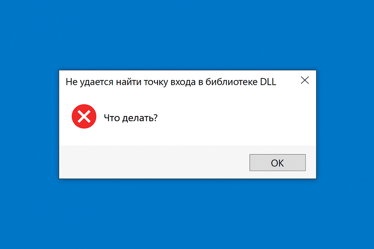 «Не удается найти точку входа в библиотеке DLL…» при запуске программы или игры. Ошибка выглядит сложной, но разобраться в ней можно даже новичку. Давайте разберёмся, что это значит и как устранить проблему. DLL (Dynamic Link Library) — это динамическая библиотека, набор файлов, которые используют разные программы. Сообщение об ошибке означает, что: Проще говоря, программа ищет «дверь» в библиотеке, но эта «дверь» отсутствует. Звучит банально, но иногда это решает временные конфликты. Удалите полностью приложение, очистите папку с его файлами и установите заново. Чаще всего ошибка связана с системными библиотеками: Скачать лучше только с официального сайта Microsoft. Зайдите в Параметры → Обновление и безопасность и установите все обновления. Часто в них приходят исправленные версии библиотек. Запустите полное сканирование Windows Defender или другим антивирусом — вредоносные программы могут подменять DLL-файлы. В сети много ресур