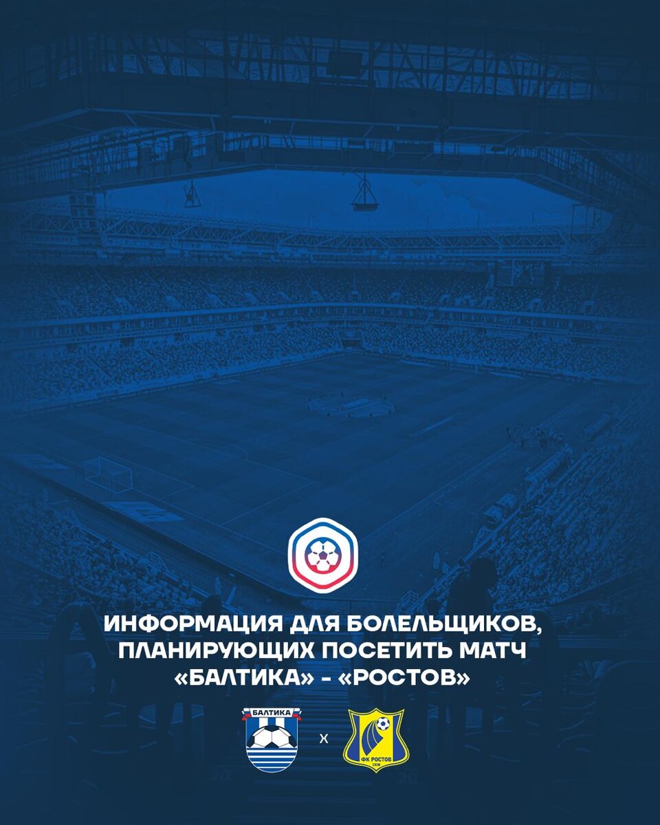 Информация для болельщиков, планирующих посетить матч «Балтика» - «Ростов» ❗️